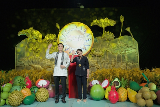 Tại sân khấu của Nông Dân Xin Chào, chị Lê Thị Sáu cùng ca sĩ Diệu Hiền gửi tặng khán giả ca khúc Tình Cây Và Đất.