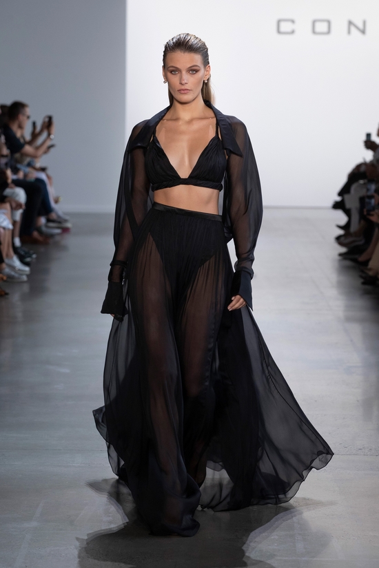 Mẫu áo chemise nằm trong look số 31 của bộ sưu tập CONG TRI Xuân Hè 2020 trình diễn tại New York Fashion Week hồi năm ngoái. Phía ekip đã rất khéo léo khi phối chiếc áo cùng bộ đồ tắm gợi cảm và quần tất đen, từ đó tôn lên vẻ đẹp hình thể nóng bỏng đầy sức hút của nữ ca sĩ người Mĩ.