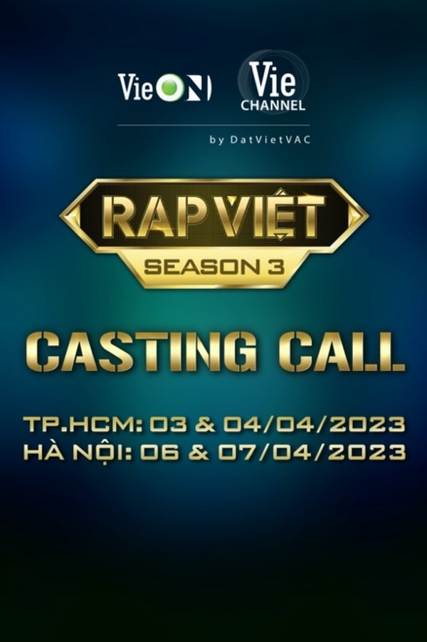 Casting Rap Việt – Mùa 3 do công ty Vie Channel – thành viên của DatVietVAC Group Holdings tổ chức sẽ chính thức diễn ra tại Tp.HCM và Hà Nội vào đầu tháng 4/2023, hứa hẹn sẽ quy tụ nhiều gương mặt rapper trẻ tài năng cùng sự quan tâm cực lớn của hàng triệu khán giả.