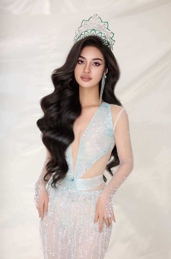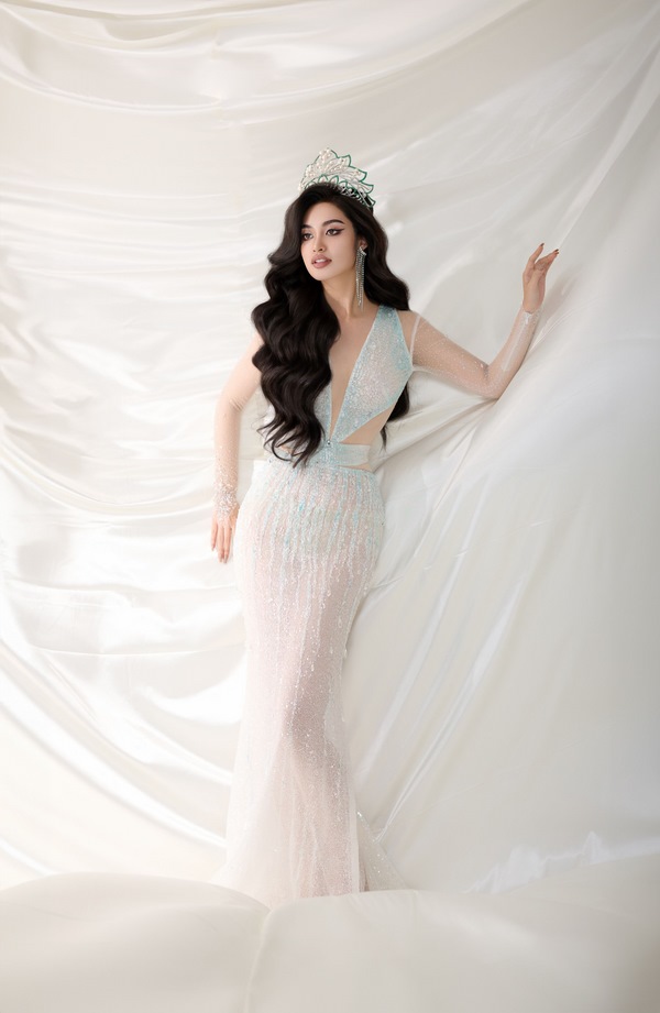 Trong bộ ảnh mới trước thềm Hoa hậu Hữu nghị Quốc tế, Nông Thúy Hằng đã khoe nhan sắc kiêu sa với vương miện Hoa hậu các dân tộc Việt Nam 2022 mang tên “Những đóa hoa nắng mai” có trị giá 3 tỉ đồng. Trong bộ ảnh này, nàng hậu diện thiết kế dạ hội đính kết cầu kì với những đường cut out táo bạo khoe vòng eo săn chắc và vóc dáng gợi cảm.