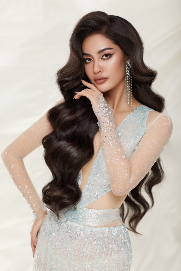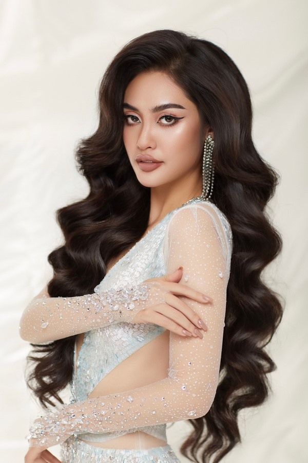 Người đẹp sinh năm 1999 chọn lối trang điểm sắc sảo nhấn vào đôi mắt và son môi trầm cùng tóc uốn xoăn bồng bềnh chuẩn beauty queen. Nông Thúy Hằng nhận được nhiều lời khen của người hâm mộ về sắc vóc cũng như biểu cảm. Netizen kì vọng cô sẽ giành thành tích tốt tại Miss Friendship International 2023.