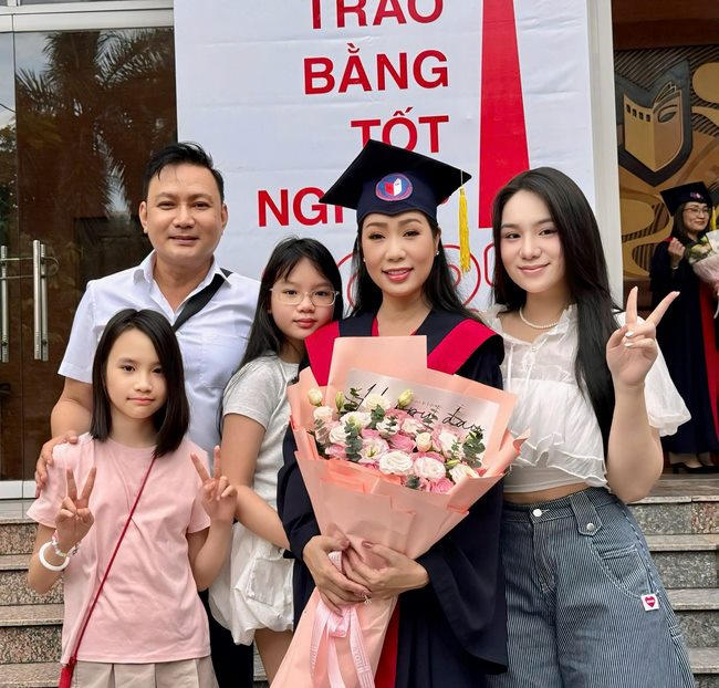 Đồng hành trong suốt quá trình học tập, không thể không nhắc đến sự ủng hộ tuyệt đối của Doanh nhân Võ Trấn Phương, người bạn đời luôn âm thầm chia sẻ mọi khó khăn, động viên từng bước tiến về tri thức. Các con của chị cũng chính là nguồn động lực ngọt ngào để chị không ngừng cố gắng và hoàn thiện bản thân. Cả gia đình nhỏ của chị đã dành trọn niềm tin, tạo mọi điều kiện tốt nhất để người vợ – người mẹ – người nghệ sĩ có thể học tập một cách trọn vẹn, nghiêm túc.