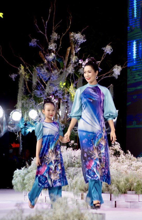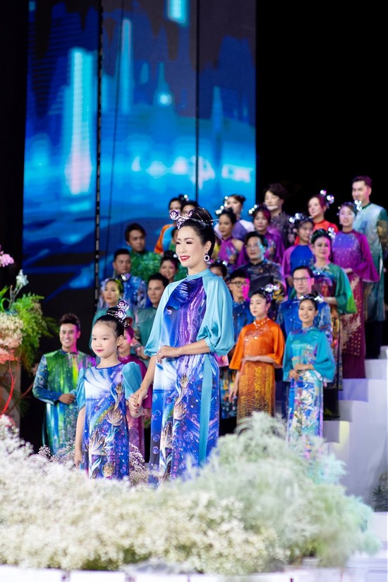 Trong đêm khai mạc Lễ hội Áo dài TPHCM năm 2022, NSƯT Trịnh Kim Chi cùng hàng trăm người mẫu, nghệ sỹ tên tuổi đã trình diễn các bộ sưu tập đặc sắc của các nhà thiết kế hàng đầu. Khán giả vô cùng bất ngờ với màn catwalk của Trịnh Kim Chi cùng con gái út trong trang phục áo dài của nhà thiết kế Việt Hùng tự tin sải bước trên đường băng.