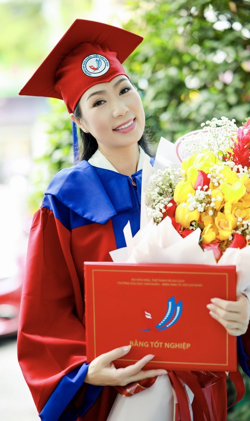 NSƯT Trịnh Kim Chi chia sẻ: “Sau 4 năm học, Chi cảm nhận được sự chỉ dạy tận tình từ các thầy cô. Cảm ơn mọi người, đặc biệt là gia đình và ông xã đã ủng hộ và đồng hành cùng Chi suốt thời gian qua để có thể xuất sắc hoàn thành khóa học mà Chi đã mong muốn từ rất lâu”.