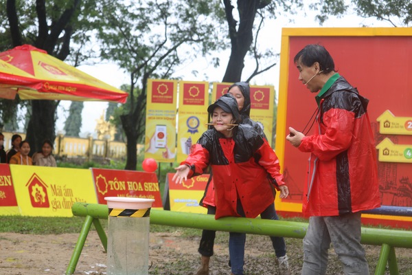 Phần thi chính diễn ra khi trời bắt đầu mưa liên tục, nền đất trở nên lầy lội khiến quần áo của NSƯT Trinh Trinh và diễn viên Hòa Hiệp lấm toàn bùn đất. Ở phần thi này, hai nghệ sĩ sẽ lần lượt kết hợp với các em nhỏ mồ côi để vận chuyển bóng nước về đích. Theo đó, người chơi phải ngậm đũa có treo những quả bóng nước, vượt chướng ngại vật và đưa bóng về đích, khi nước chạm đến vạch quy định là hoàn tất. Việc mưa gió cùng nền đất lầy lội khiến cho thử thách trở nên “khó nhằn” hơn. Thậm chí, MC Quyền Linh còn bị trượt ngã khi đang phổ biến luật chơi của chương trình. Hình ảnh các nghệ sĩ bất chấp đầu ướt mưa, giầy dép quần áo lấm đầy bùn đất vẫn ghi hình để giúp đỡ các hoàn cảnh khó khăn khiến nhiều người xúc động.