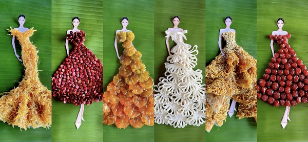 Quây quần bên gia đình ngày Tết, NTK Nguyễn Minh Công đã nảy ra ý tưởng thực hiện BST từ ngay chính những món bánh mứt quen thuộc của mùa lễ hội.