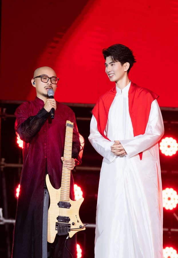 Xuất hiện tại sự kiện, NTK Nguyễn Minh Công gây ấn tượng với phong thái trang nhã, tinh tế trong bộ trang phục áo dài trắng khóa thêm phụ kiện khăn đỏ sao vàng. Với lần tham gia này, Nguyễn Minh Công đảm nhận vai trò đặc biệt là đưa thời trang vào chương trình như một mạch kết nối di sản, song hành cùng âm nhạc, hội họa và các loại hình nghệ thuật biểu diễn. Các trang phục của NTK Nguyễn Minh Công được trình diễn trên nền nhạc được thực hiện bởi nghệ sĩ Dzung. “Tôi rất tự hào khi được đại diện cho khối sáng tạo trẻ, góp phần đóng góp và quảng bá nét văn hóa, truyền thống và di sản của dân tộc bằng thời trang trong một sự kiện có ý nghĩa lịch sử trọng đại. Đây là cơ hội không chỉ cho cá nhân tôi, mà còn cho thế hệ nhà thiết kế trẻ đang miệt mài với đam mê trang phục truyền thống.” Nguyễn Minh Công chia sẻ.