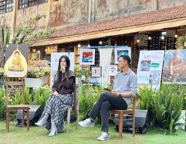 Đặc biệt, trong không gian ấm cúng của Lặng Art Café, hoạt động tô màu bức tranh hoa sen 54 cánh – biểu tượng xuyên suốt của dự án – tiếp tục được thực hiện. Lần này, các nghệ sĩ khiếm thính và khiếm thị đã góp phần tô màu lên những cánh hoa, tạo nên một bức tranh đầy ý nghĩa.