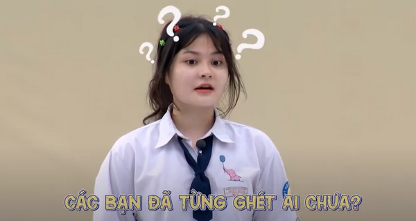 Bên cạnh đó, nữ sinh cũng chia sẻ, hiện tại, nữ sinh đã chuyển sang ghét bạn… lớp trưởng – Diễm My. Theo Vi, lớp trưởng là cô bạn học giỏi, gương mẫu, đạt nhiều thành tích cao trong các cuộc thi. Nhật Vi đã nhìn vào lớp trưởng để cố gắng, cô bạn cho biết đã nỗ lực học hành rất nhiều để bằng điểm với bạn lớp trưởng nhưng vẫn chưa theo kịp.