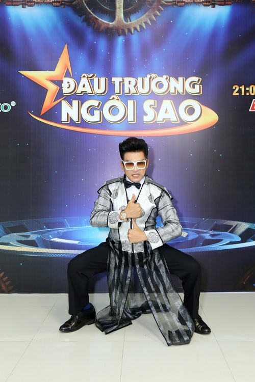 Dù nổi tiếng với phong cách ăn mặc quái dị, khác người, MC Thanh Bạch vẫn tự hào với những bộ quần áo tự thiết kế tại Đấu Trường Ngôi Sao.