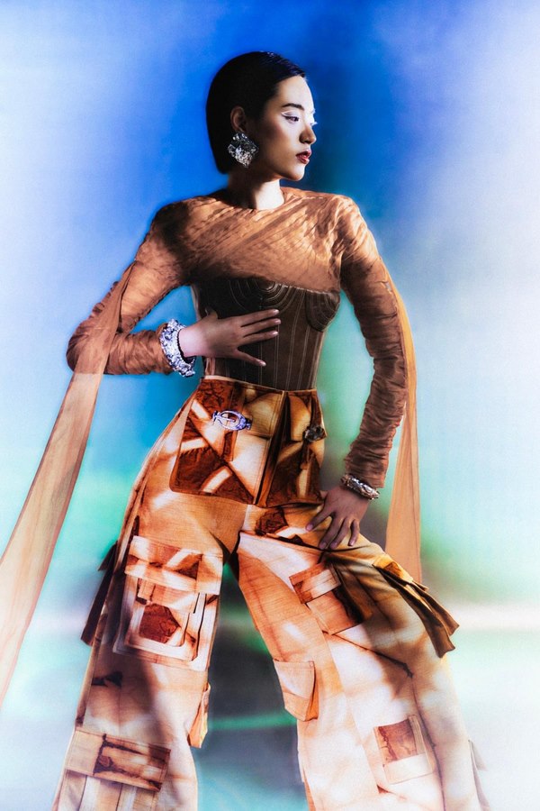 BST “MIRAGE” là sự gắn kết siêu thực giữa hình tượng con người và thiên nhiên Tây Bắc, biểu trưng cho những khát khao, hy vọng bứt phá khỏi mọi giới hạn để vươn tới hành trình tự do, được làm chủ cuộc sống cá nhân. Tại MODES Milano, BST mới nhất của NTK trẻ tuổi người Việt tạo sức cuốn hút với những đường nét, hình khối phá cách với góc nhìn đương đại mới lạ trong một đề tài đậm chất truyền thống.