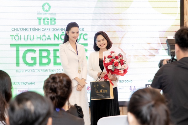 Tại sự kiện, chân dài gốc Tiền Giang diện thời trang thanh lịch, sang trọng dẫn dắt chương trình từ đầu đến cuối tràn đầy năng lượng. Sự kiện thu hút hàng trăm doanh nhân thành đạt, uy tín là thành viên của TGB. Người đẹp cho biết cô kỳ vọng có thể xây dựng Cà phê doanh nhân trở thành sự kiện thường kỳ nhằm kết nối, giao lưu học hỏi của các thành viên trong câu lạc bộ mà mình làm Phó chủ tịch.