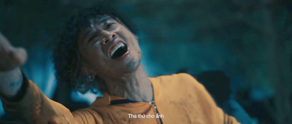 Ngoài ra ở phần rìa phải, nhân vật của Tuấn Trần cũng xuất hiện “thoắt ẩn thoắt hiện”, trông như đang cúi người lẩn trốn khỏi sự truy lùng tinh quái của con gấu. Trong teaser trailer trước đó, việc Tuấn Trần bị con gấu lôi đi đã khiến khán giả phải thót tim. Sang poster lần này, người xem có thể tạm thời “nhẹ nhõm” vì chắc chắn Tuấn Trần sẽ có những pha chống trả, giành giật sự sống đầy “máu lửa”.