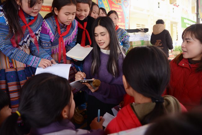 Kết thúc buổi giao lưu, mỗi em học sinh đều được nhận một phần quà nhỏ và một tấm thiệp có chữ ký của Phúc Anh. Hàng dài các em xếp hàng chờ đợi, những ánh mắt rạng rỡ và nụ cười hồn nhiên đã khiến mọi mệt mỏi của chuyến đi dường như tan biến.