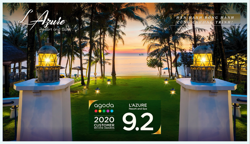 L’azure Resort & Spa Phu Quoc tọa lạc tại trung tâm thị trấn Dương Đông, huyện đảo Phú Quốc. Sở hữu không gian vườn xanh mát, bãi biển đẹp nên thơ, khu nghỉ dưỡng được ngợi khen là nơi ngắm hoàng hôn đẹp nhất Phú Quốc theo lời các du khách đã từng đặt chân đến đảo ngọc. Năm 2020, L’azure Resort & Spa vinh dự đạt giải thưởng Customer Review Awards dựa trên đánh giá xuất sắc 9.2/10 từ du khách của hơn 20 Quốc gia qua Agoda.