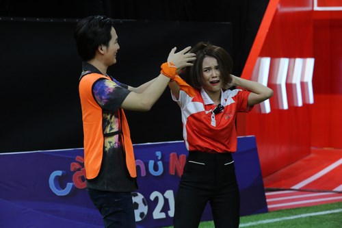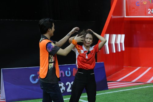 Tại hậu trường của chương trình, MC Sam và Tungage trò chuyện rất thân mật với nhau và cho biết cả hai đã cùng tham giam một chương trình trước đó. Tungage trêu chọc Sam: “Lúc đó em làm vợ anh còn gì nữa”. Nghe vậy, Sam liền tỏ vẻ “e ngại” và lo sợ các cầu thủ nhí sẽ nghe thấy, nhưng cô vẫn không ngần ngại “thả thính”: “Hôm bữa chương trình đó, em có nói là mình sẽ ngồi trên xe nhau để đi biểu diễn khắp Việt Nam. Nhưng mà cuối cùng đi không được. Hôm nay mà em làm được thử thách mà anh đưa ra là anh phải lấy xe chở em về liền nha”.