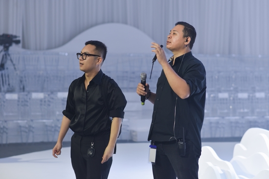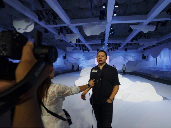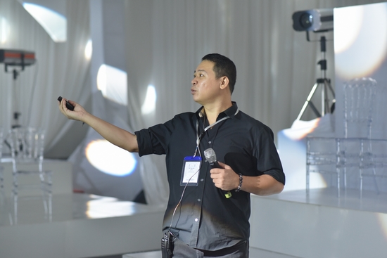 Anh cho biết, chương trình thời trang cưới nên mong muốn ban tổ chức ngoài khu triển lãm phải đẹp thì khán phòng trong sân khấu cũng phải lung linh. Ban tổ chức mong muốn ngồi trong một không gian thật đẹp và điều này đối với các NTK thì họ lại mong muốn ánh sáng tập trung và sân khấu để tôn vinh bộ trang phục, đặc thù đồ cưới với màu sắc trắng tinh khôi đính kết đá lấp lánh thì ánh sáng lại cực kỳ quan trọng để nổi bật chất liệu và cách đính kết cầu kỳ.