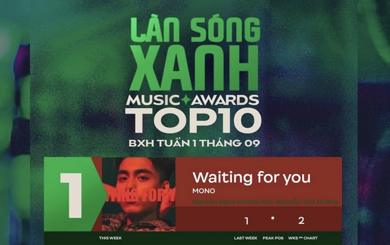 Waiting For You – bản hit đang được giới trẻ replay ưu ái, replay chỉ sau Quên Anh Đi trong Album 22 cũng đem về cho chủ nhân MONO những thành tích ấn tượng như #1 BXH Apple Music, #1 BXH Apple Music Daily, #1 Spotify Daily Chart (BXH ngày 09/09), #1 BXH Làn sóng xanh tuần 1 tháng 09, #1 BXH Nhaccuatui, #1 Ituned Daily Top Song, #2 Trending Youtube Music, #3 BXH Zing Chart.
