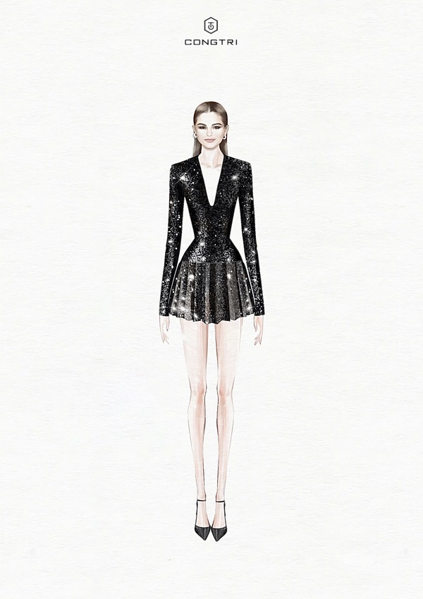 Kỳ thực đây vốn là 1 trong 36 sáng tạo thuộc BST Thu/Đông 2024 vừa qua của NTK Công Trí. “Bản gốc” vốn là thiết kế đầm dài chạm đất với điểm nhấn là đóa hoa diên vỹ cỡ đại.