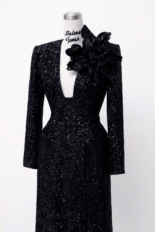Chất liệu sequin lộng lẫy giúp Selena Gomez trở thành “nữ hoàng đêm tiệc”, cùng với những khoảng hở đầy táo bạo từ chất liệu chiffon. Để tăng thêm độ nóng bỏng, người đẹp còn phối thêm mẫu bra ren màu đen bên trong váy.