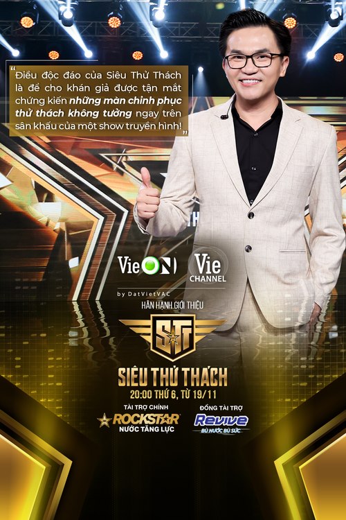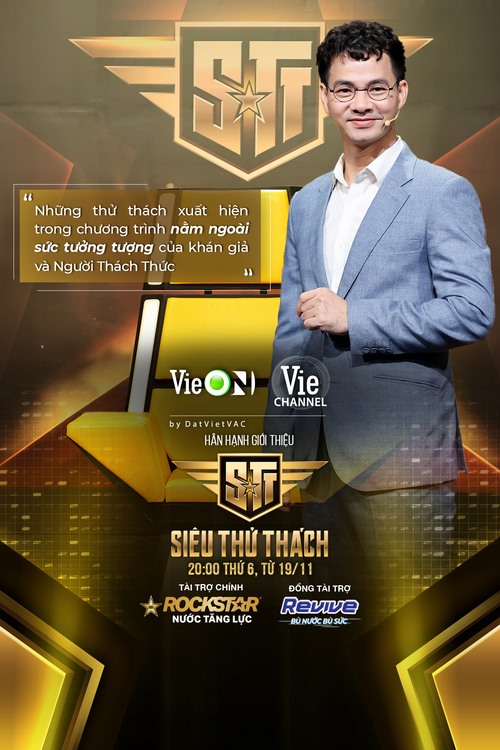 Siêu Thử Thách do Vie Channel sản xuất sẽ ra mắt khán giả lúc 20h Thứ Sáu hàng tuần, bắt đầu từ 19/11 duy nhất trên ứng dụng VieON và kênh truyền hình Vie Channel – HTV2, Vie GIẢITRÍ.
