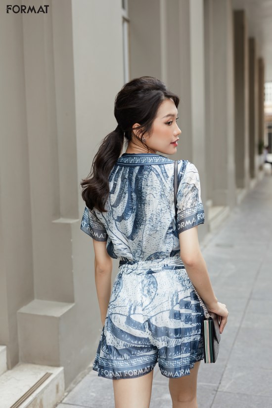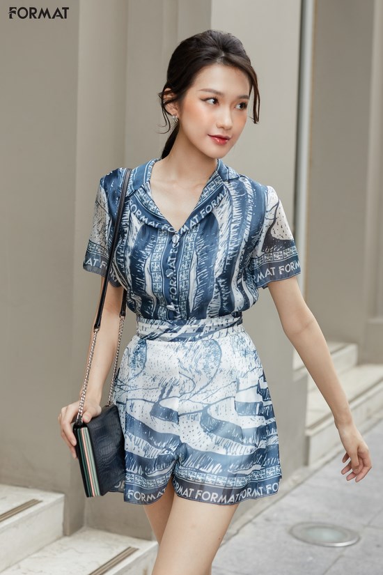 Chiếc áo sơ mi ngắn tay với chất liệu mỏng nhẹ, được nhấn nhá bởi những mảng họa tiết tông màu lạnh phối cùng quần short sẽ tạo nên cảm giác thoải mái cho người mặc. Đặc biệt với set trang phục này, các quý cô công sở vẫn có thể tự tin tỏa sáng mà không lo thiếu lịch sự. Để bản thân trở nên nổi bật hơn, các nàng có thể phối các phụ kiện nhỏ như hoa tai, dây chuyền, lắc tay. Bộ trang phục này cũng vô cùng phù hợp để các nàng diện khi bước xuống phố đấy!
