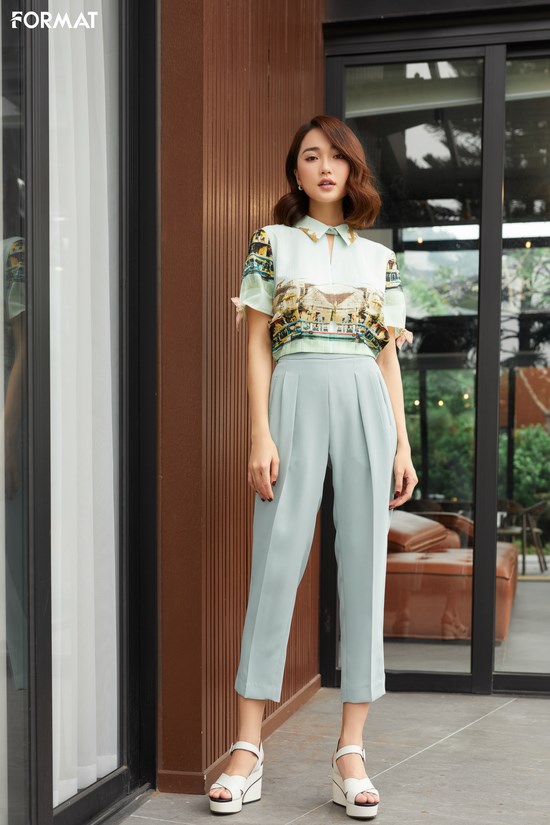 Vẫn là áo sơ mi ngắn tay nhưng khi đi với quần tây sẽ tạo nên một khí chất hoàn toàn khác biệt. Set trang phục này sẽ tôn vinh được thần thái quyền lực, sang trọng chững chạc của các nàng nơi chốn công sở. Đây là một gợi ý hoàn hảo cho bạn trong những dịp quan trọng như hội họp hoặc gặp gỡ đối tác. FORMAT cũng mách bạn một “tuyệt chiêu” để bạn trở nên nổi bần bật trong đám đông đó chính là hãy lựa chọn những chiếc áo sơ mi có họa tiết sáng màu.
