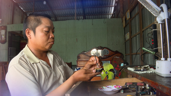 Chẳng may mắc bệnh sốt bại liệt năm 2 tuổi, anh Nguyễn Hoàng Nam (1980) phải chật vật lớn lên với một đôi chân teo nhỏ. Vì cơ thể yếu ớt, anh Nam luôn trăn trở tương lai sẽ không làm được những công việc thuê mướn nặng nhọc nên đã ra sức học nghề. Anh Nam có đôi tay khéo léo và trí óc nhạy bén nên khi làm quen với nghề nào anh cũng học hỏi và thành thạo rất nhanh. Đầu tiên anh bén duyên với nghề làm trang sức bạc, nhưng sau 3 năm làm thuê vẫn không có vốn mở tiệm nên anh Nam chuyển sang nghề sửa đồng hồ. Công việc sửa đồng hồ thuận lợi nhưng lúc đó nghề sửa điện thoại lại rất thịnh hành nên anh Nam đã tranh thủ thời gian buổi tối nhờ bạn bè dạy sửa điện thoại. Anh Nam chia sẻ: “Mình cũng muốn học nhiều nghề để bà con có điện thoại hư hay đồng hồ hư mình đều sửa được. Mỗi lần sửa được 1 món đồ, bà con vui mình cũng vui”.