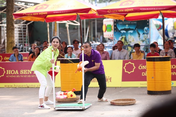 Vân Trang và ST Sơn Thạch đã liên tục “ăn gian” để đưa các quả cầu vào trúng đích. Sau 1 phút 30 giây “tụt huyết áp”, hai nghệ sĩ hạnh phúc reo hò khi vượt qua thử thách. MC Quyền Linh bật cười “bất lực”: “Tự chơi, tự nhặt bỏ vào, tự xem giờ, tự ăn mừng chiến thắng luôn”.