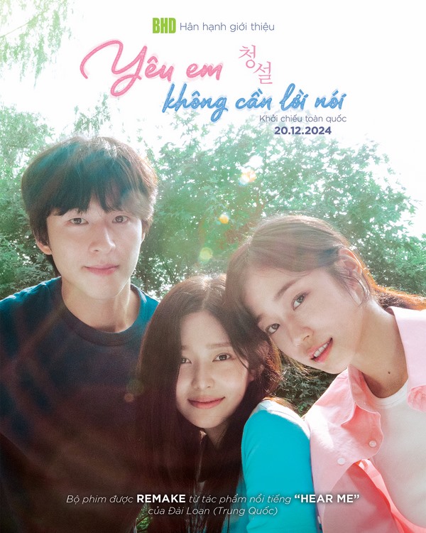 BHD hân hành phát hành bộ phim Hàn Quốc “Yêu Em Không Cần Lời Nói” được remake từ tác phẩm Hear Me nổi tiếng của Đài Loan, dự kiến phát hành các cụm rạp trên Toàn quốc vào ngày 20/12/2024.