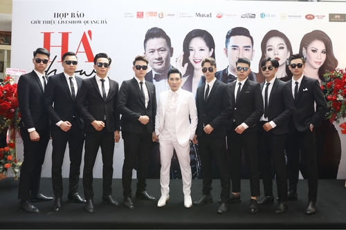 Quang Hà di chuyển bằng xe sang đến sự kiện và được dàn trai đẹp 6 múi hộ tống. Nhan sắc của giọng ca “Ngỡ” được nhận xét ngày càng phong độ, lão hoá ngược.