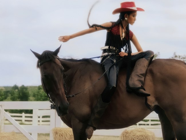 Ngựa – biểu tượng vĩnh cửu của tự do, kiêu hãnh và sức mạnh – từ lâu đã trở thành nguồn cảm hứng bất tận cho các bộ ảnh thời trang quốc tế. Thế nhưng, để biến cảm hứng hoang dã ấy thành một khung hình thời thượng đỉnh cao lại là một hành trình đầy thử thách, nơi người mẫu không chỉ “đẹp” mà còn phải hòa mình vào tinh thần chiến binh phóng khoáng của những cô nàng cao bồi hiện đại. Giữa bối cảnh đậm chất viễn Tây với ánh nắng rực lửa, trang phục cowboy cá tính và “bạn diễn” là những chú ngựa tràn đầy sức sống, từng ánh mắt, từng cử chỉ, từng chuyển động cơ thể đều phải đạt đến sự kiểm soát tuyệt đối để vừa giữ được chất high fashion vừa truyền tải được khí chất tự do mãnh liệt. Đồng hành và bắt trọn mọi khoảnh khắc quý giá ấy là nhiếp ảnh gia Mạnh Bi – người đã chứng minh khả năng dẫn dắt thí sinh tạo nên những khung hình giàu cảm xúc và ấn tượng ngay từ tập mở màn.
