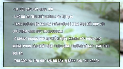 Trichoderma, tránh bón nhiều phân đạm sẽ làm cho bệnh dễ phát triển và lây lan.