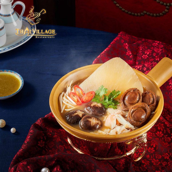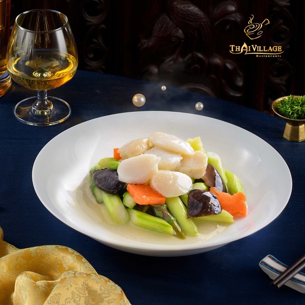 Nhà hàng Thai Village là sự lựa chọn thích hợp để thưởng thức bữa tiệc thịnh soạn với thực đơn hơn 50 món ngon đa dạng, phong phú như: Vi cá thượng hạng thịt cua & bào ngư, Bào ngư nguyên con xốt đặc biệt, Miến cua nung nồi gang, Tôm xốt mayonnaise / wasabi, Chè tổ yến, …
