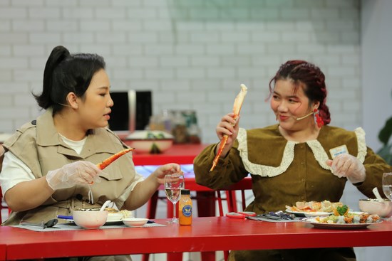 Vừa nhìn qua các khách mời, Chen Ru Lu thấy ai cũng lột vỏ cua không đúng cách khiến chân cua “nát”, không giữ được nguyên vẹn thịt cua. “Em có một mẹo cho mọi người đó là khi ăn cua hoàng đế mọi người nhớ xin thêm một cái kéo và cắt dọc vỏ cua ra sẽ giữ được cho thịt cua được nguyên vẹn”, Chen Ru Lu nói thêm. Nghe vậy, diễn viên Lê Trang lên tiếng trách móc đầy xéo sắc: “Em biết vậy sao em không xin kéo cho mọi người luôn đi, em xin cho mỗi mình em rồi giờ em bảo đây là mẹo của mình”. Tuy nhiên, Chen Ru Lu đã rất biết cách “lấy lòng” thực khách của mình bằng cách tặng ngay chiếc chân cua đã được lột sạch vỏ cho đàn chị khiến cô thích mê.