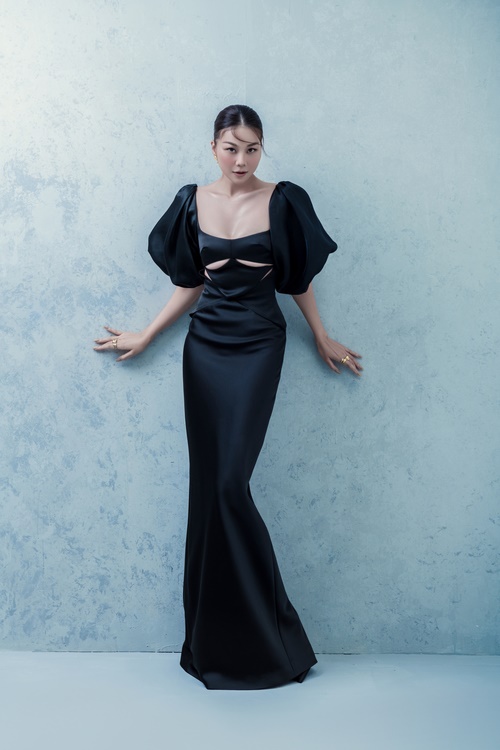 Hình ảnh sắc sảo và sang trọng của Thanh Hằng trong bộ ảnh mới đầu năm 2022. Thanh Hằng diện một chiếc đầm chất liệu double satin phối cùng chất liệu tơ tằm gaza. Những đường cut-out tại phần thân trên tạo lên nét gợi cảm và quyến rũ.
