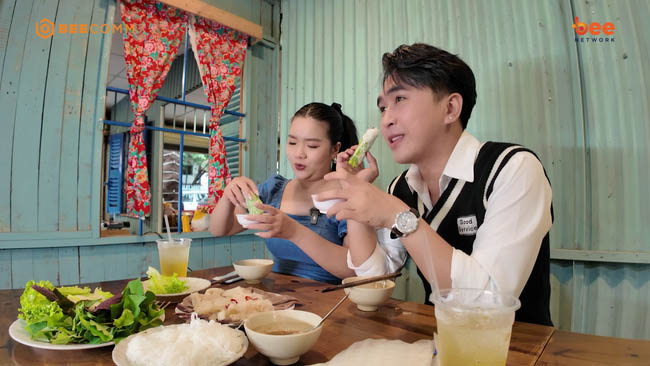Thanh Nhí thích nét gần gũi của quán lẩu và đặc biệt là tạo không gian mở, không gian sân vườn được mở rộng phía sau tạo cảm giác thoải mái khi dùng bữa. Thưởng thức món ngon, Chen Ru Lu thích thú với các món: Gỏi gân bò sốt Thái, bánh tráng cuốn lòng bò và lẩu bò mắm ruốc. Các loại rau, bánh phồng ăn kèm cũng được hai thực khách đánh giá cao. Với món lẩu bò mắm ruốc, cả Chen Ru Lu và Thanh Nhí đều thích thú vì hương vị đậm đà của nước dùng. Thịt bò được nhúng sơ qua trong nước lẩu ăn cùng bún, rau xanh được đánh giá vừa miệng.