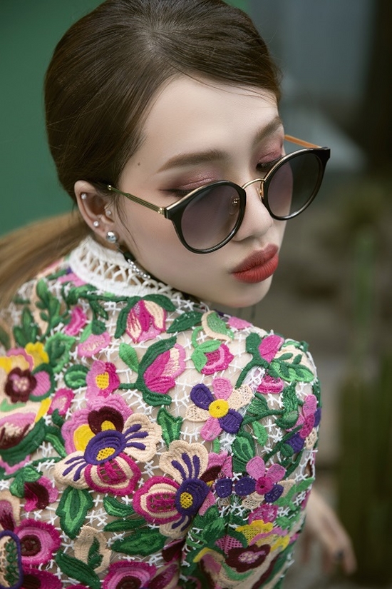 Trang phục lần này kết hợp gam màu pastel nhẹ nhàng cùng họa tiết floral trendy nổi bật.
