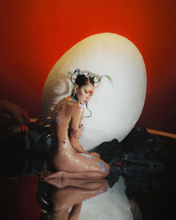 Trong bộ ảnh này, Thảo Nhi Lê đã khoác lên mình đặc điểm của nhiều loài vật quen thuộc trong truyền thuyết như rồng, rắn, cá và loài chim lông vũ. Nối tiếp ý tưởng từ bộ hình về mẹ Âu Cơ từng gây bão vào năm 2022, bộ hình “Giống Rồng Tiên” mang đến câu chuyện viễn tưởng về quả trứng thứ 101 bị thất lạc của người mẹ huyền thoại. Sinh linh này đã được tìm thấy và lưu giữ tại một nơi bí mật để rồi linh khí của năm Rồng khiến quả trứng đặc biệt này trở mình. Đến cuối cùng, một em bé còn sót lại của Giống Rồng Tiên được chào đời vào đúng mùng 1 Tết của năm Giáp Thìn.