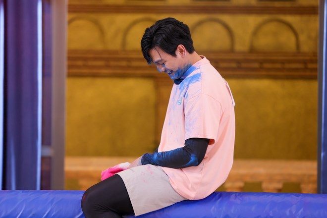 Ở thử thách thứ hai, mỗi đội chọn một thành viên leo lên cột ngang. Nhiệm vụ của họ là giữ thăng bằng và dùng miếng mút chứa phấn màu để “tấn công” đối thủ.