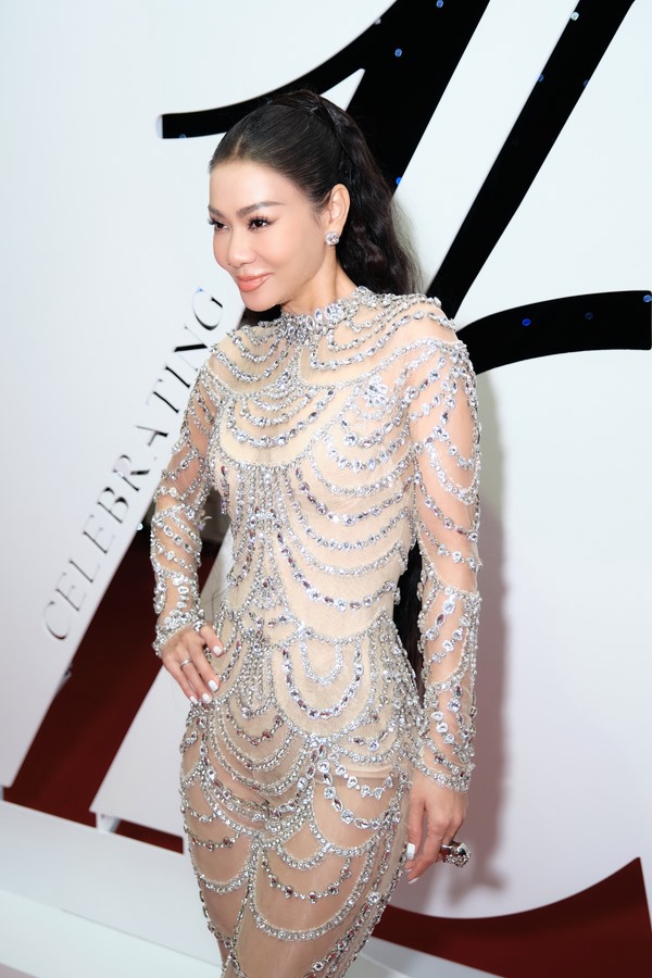 Lối trang điểm sắc sảo và phong thái sang chảnh cũng giúp Thu Minh càng chiếm spotlight tại sự kiện. Nữ nghệ sĩ tự tin sải bước trên thảm đỏ và vui mừng khi tái ngộ đồng nghiệp thân thiết Vũ Thu Phương.