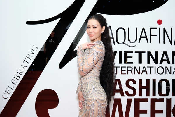 Đến Vietnam International Fashion Week 2023 (Tuần lễ thời trang Việt Nam 2023), Thu Minh nổi bật với bộ jumpsuit đính đá tông trắng quyến rũ. Thiết kế bó sát cơ thể tôn lên vóc dáng nóng bỏng với vòng một gợi cảm, eo thon thả cùng hông nở nang của người đẹp.