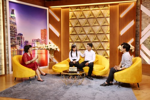 Lắng nghe câu chuyện tình yêu cổ tích của hai vợ chồng anh Lê Minh Thái và chị Nguyễn Thị Hương, NSƯT Kim Phương cùng MC Đình Toàn bày tỏ sự ngưỡng mộ về nghị lực cũng như sự chân thành mà cả hai đã dành cho nhau. NSƯT Kim Phương mong cặp đôi sớm có con để trong nhà có thêm tiếng cười vui của trẻ thơ, đồng thời hi vọng hạnh phúc của cả hai sẽ luôn gắn kết mãi mãi như ở hiện tại.