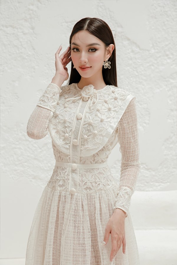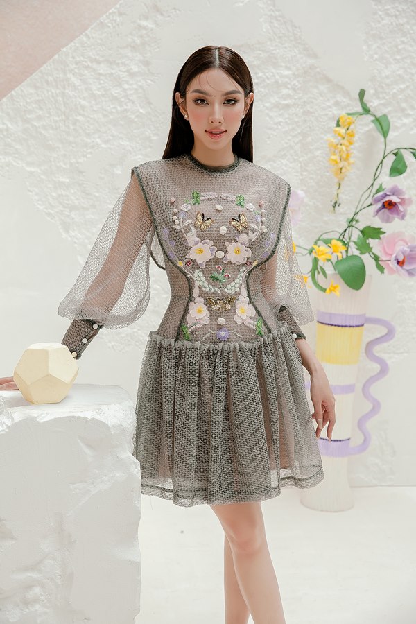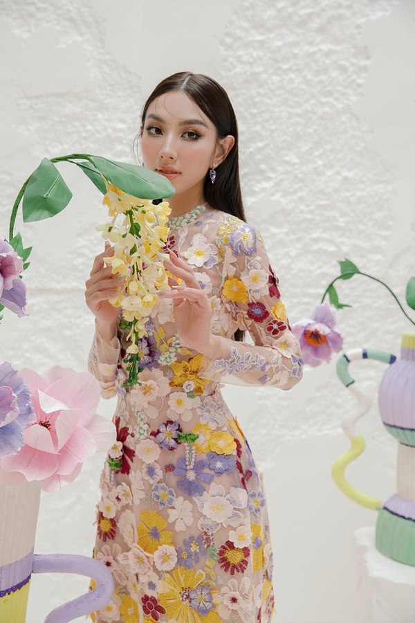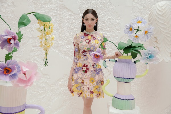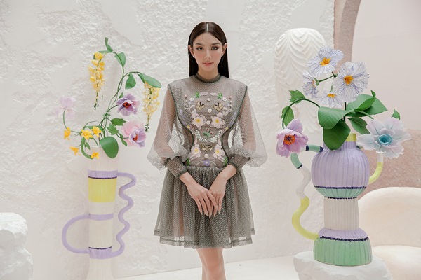 Bộ sưu tập Let your dream blossom là màn hòa tấu hoàn hảo của sự duyên dáng, tràn ngập sức sống cùng với một vẻ đẹp riêng biệt, đưa nàng đắm chìm vào một “bữa tiệc hoa” đầy bay bổng của cảm hứng của tự nhiên. Diện những chiếc váy phom dáng thanh lịch, thêu đính thủ công, Thùy Tiên như một nàng công chúa bước ra từ khu vườn ngập tràn hoa đang mùa nở rộ. Bên cạnh đó, nét phóng khoáng trong từng tạo hình bông hoa muôn hình muôn vẻ, rạo rực trong sắc màu, các thiết kế như đang tinh tế bộc lộ niềm hăng say và nhiệt huyết của mỗi Quý cô hiện đại trên hành trình khám phá bản thân.