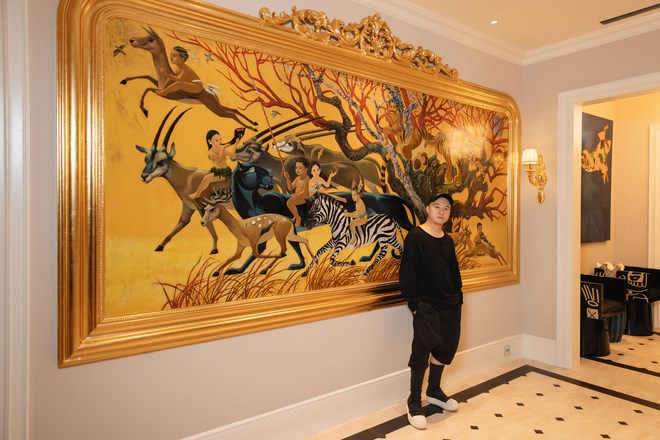 Bên trong không gian sống, Đỗ Mạnh Cường sưu tập nhiều tác phẩm hội họa của các danh họa nổi tiếng Việt Nam, tạo điểm nhấn nghệ thuật và chiều sâu văn hóa cho nơi ở.