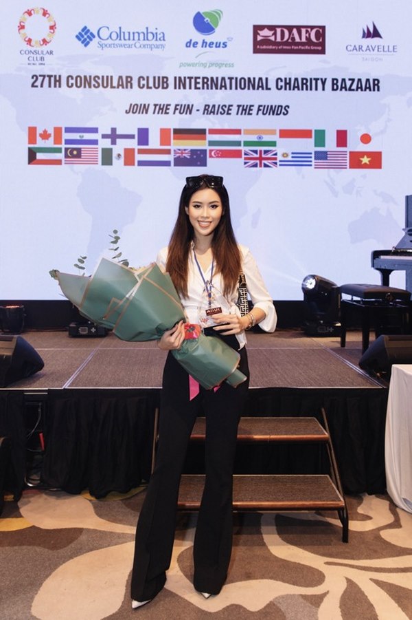 Với hình ảnh giản dị nhưng không kém phần xinh đẹp, rạng ngời, Tiên Nguyễn góp mặt tại sự kiện Hội chợ từ thiện quốc tế CLB Lãnh sự