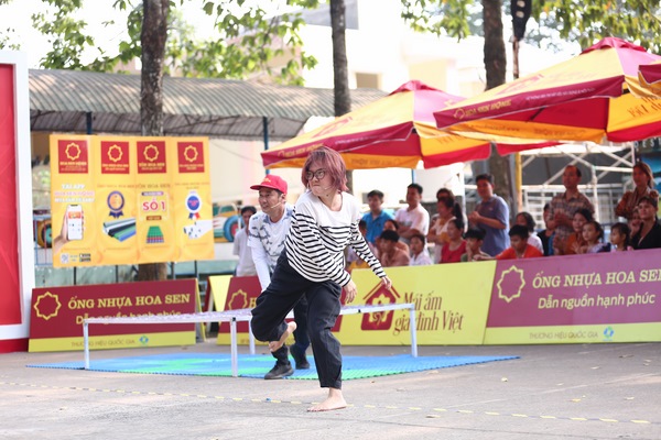 Về phần Tiết Cương, nam diễn viên cũng đã lăn lê đủ kiểu để vượt chướng ngại vật nhưng vẫn ngắm không chuẩn điểm đích. Thấy đàn em ném trượt, Quyền Linh đã trêu chọc nam diễn viên là đang ném máy bay chứ không phải ném bóng vào điểm đích. Dù vậy, nam MC vẫn liên tục cổ vũ tinh thần đàn em: “Cố lên, canh điểm đích kỹ vào Cương ơi”. Nhanh chóng lấy lại tinh thần, diễn viên phim “Lật mặt” đã liên tục ghi điểm khi giúp đỡ gia đình thứ ba.