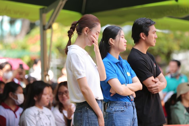 Hà Thu cũng không giấu được nước mắt khi chia sẻ với Tuyết Nhân: “Dù tôi lớn lên trong gia đình đầy đủ tình thương, nhưng vẫn cảm nhận được nỗi đau của Nhân từ tận đáy lòng. Mất đi cha mẹ ở độ tuổi này là cú sốc quá lớn”.