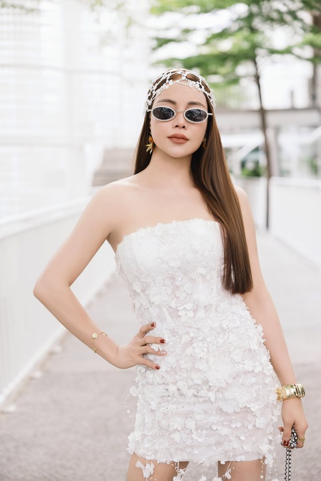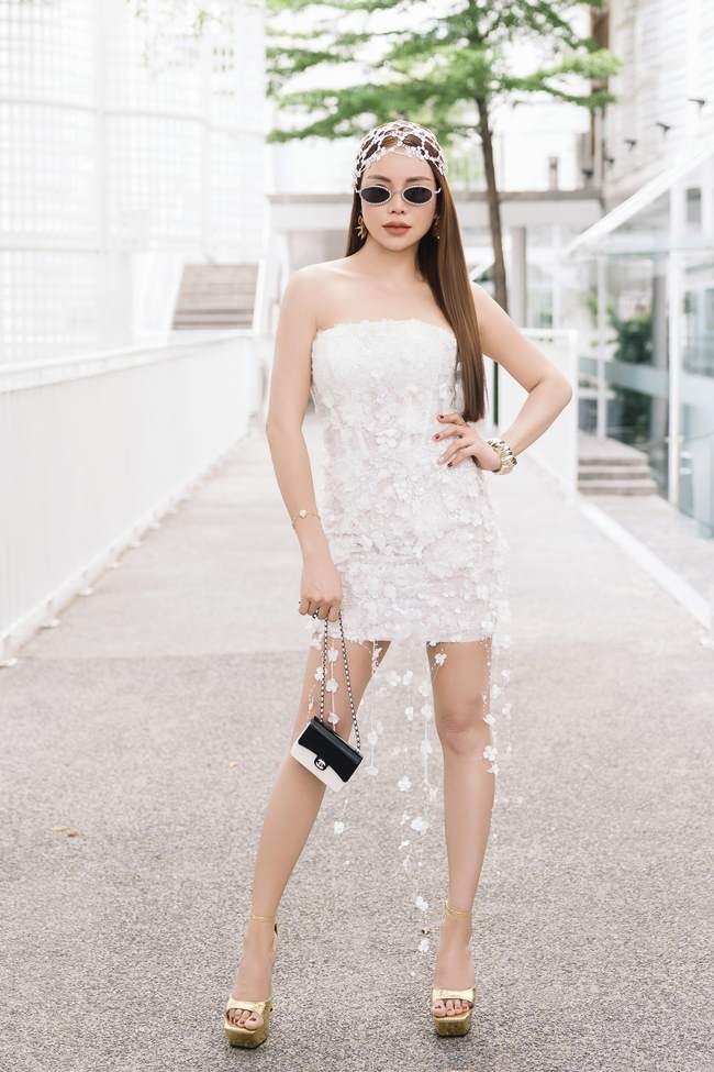Trà Ngọc Hằng là một trong những ngôi sao thu hút mọi ánh nhìn tại sự kiện Omni Bridal Show mừng kỷ niệm 18 năm thành lập. Người đẹp chọn bộ váy cúp ngực có thiết kế bó sát cơ thể tôn sắc vóc quyến rũ đáng ngưỡng mộ. Đặc biệt, Trà Ngọc Hằng khéo léo kết hợp những phụ kiện như mũ ren, bông tai, mắt kính và túi để tạo nên một outfit độc đáo, tôn vinh vẻ đẹp sang chảnh và năng động. Set đồ không chỉ cho thấy bà mẹ một con có gu thời trang hiện đại lẫn cá tính, mà còn giúp cô trở nên nổi bật giữa dàn sao tại đây.