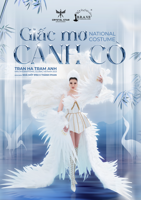 Sau bao ngày nỗ lực trau dồi kỹ năng catwalk, trình diễn cũng như ứng xử, người đẹp Trâm Anh đã chính thức lên đường chinh chiến tại Mrs International Global 2023 diễn ra trên đất Malaysia. Mỹ nhân 8X được mong đợi sẽ tạo nên kỳ tích và ghi dấu ấn Việt Nam vào bản đồ sắc đẹp thế giới. Mới đây, Trâm Anh đã chính thức hé lộ trang phục dân tộc sẽ đồng hành cùng cô trong cuộc thi chính là Giấc Mơ Cánh Cò thiết kế bởi Nhà Mốt 9192 và NTK Thành Phan. Được biết, bộ sắc phục lấy cảm hứng từ chính hình tượng con cò quen thuộc trong các tác phẩm văn học dân gian và ẩn chứa một hàm ý đầy sâu sắc về người phụ nữ đất Việt.